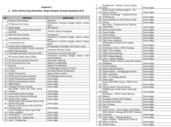 Daftar entitas investasi ilegal yang ditangani satgas waspada investasi a. 10/10/2019 · berikut adalah daftar investasi ilegal yang ditangani satuan tugas (satga) waspada investasi ojk. 04/11/2021 · berikut daftar investasi ilegal yang ditutup oleh satgas waspada investasi. Penawaran ini sering disamarkan sebagai penjualan langsung dan/atau peluang bisnis dengan bunga dan skema investasi yang tampak atraktif. Bitrexgo solusi prima pelatihan perdagangan forex 2.