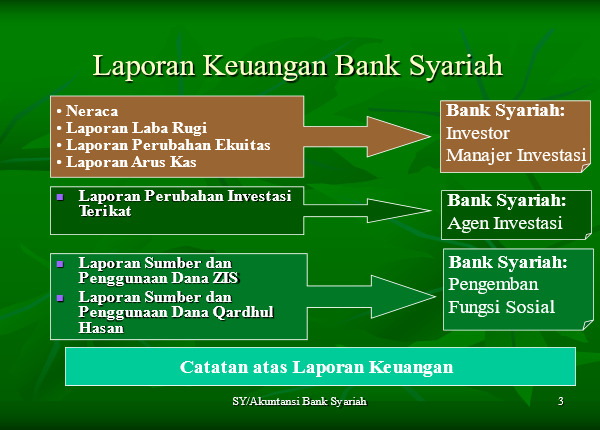 Ekuitas entitas syariah pada tanggal pelaporan yang memenuhi kriteria pengakuan. Unsur laporan keuangan entitas syariah . Unsur laporan keuangan konvensional terdiri dari neraca, laporan laba rugi, laporan arus kas, laporan perubahan ekuitas, dan catatan atas laporan keuangan. Kelompok 3 akuntansi perbankan syariah (4c). Laporan keuangan syariah adalah suatu laporan keuangan mencatat secara.